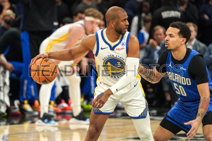 Orlando, Florida, USA, March 27, 2024, Golden State Warriors guard Chris Paul #3 tries to work his way pass Cole Anthony #50 at the Kia Center. (Photo Credit: Marty Jean-Louis)