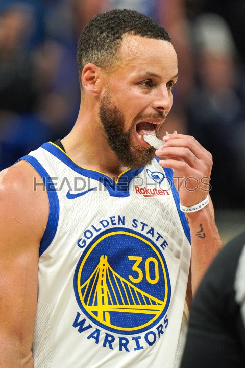 Orlando, Florida, USA, March 27, 2024, Golden State Warriors' Stephen Curry #30 puts his mouth guard on during the second quarter at the Kia Center. (Photo Credit: Marty Jean-Louis)