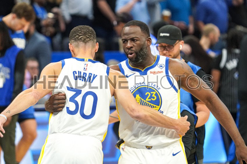 Orlando, Florida, USA, March 27, 2024, Golden State Warriors players Stephen Curry #30 and Draymond Green #23 share a hug before the opening tip off at the Kia Center. (Photo Credit: Marty Jean-Louis)