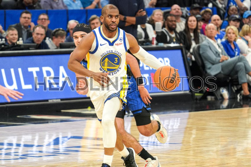 Orlando, Florida, USA, March 27, 2024, Golden State Warriors guard Chris Paul #3 runs pass Anthony Black #0 in the second half at the Kia Center. (Photo Credit: Marty Jean-Louis)
