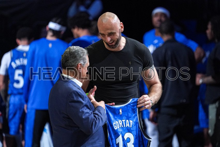 Orlando, Florida, USA, March 29, 2024, Former Orlando Magic player Marcin Gortat receives special Jersey at the Kia Center. (Photo Credit: Marty Jean-Louis)