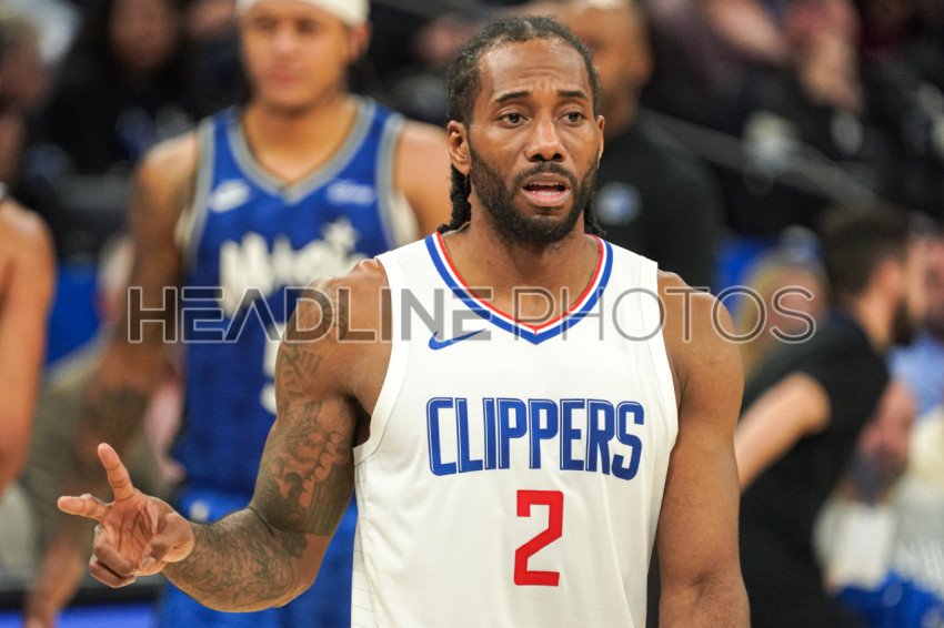Orlando, Florida, USA, March 29, 2024, Los Angeles Clippers forward Kawhi Leonard #2 makes a sign at the Kia Center. (Photo Credit: Marty Jean-Louis)