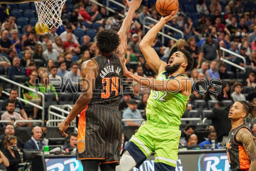 Orlando, Florida, USA, March 11, 2022, Minnesota Timberwolves Center Karl-Anthony Towns #32 attempt to make a basket during the first half at the Amway Center. (Photo Credit: Marty Jean-Louis)