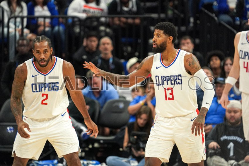 Orlando, Florida, USA, March 29, 2024, Los Angeles Clippers players Kawhi Leonard #2 and Paul George #13 at the Kia Center. (Photo Credit: Marty Jean-Louis)
