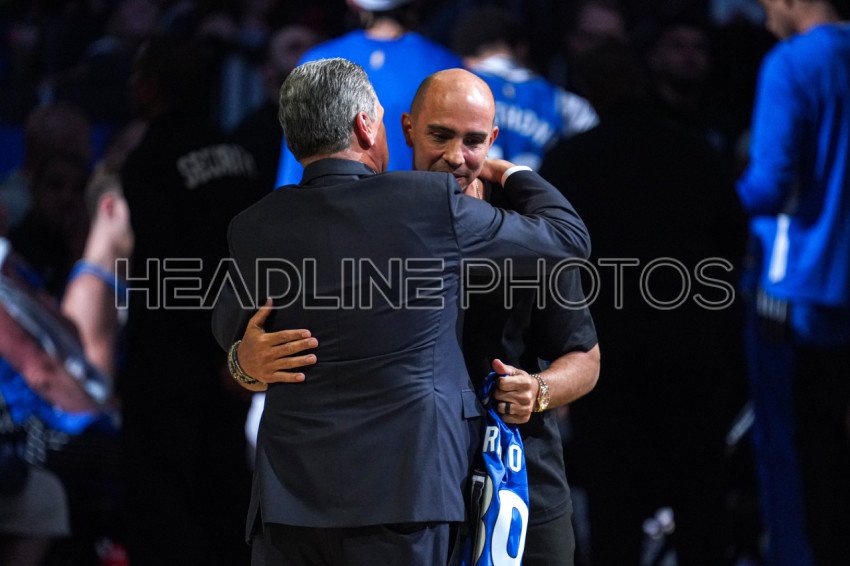 Orlando, Florida, USA, March 30, 2024, Former NBA player Carlos Alberto Arroyo Bermúdez receives a special Jersey from the Orlando Magic CEO Alex Martins at the Kia Center. (Photo Credit: Marty Jean-Louis)