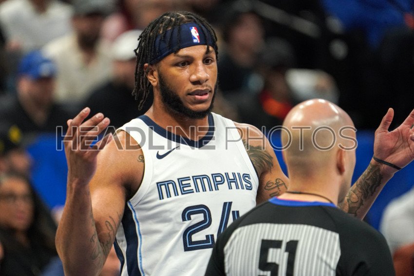 Orlando, Florida, USA, March 30, 2024, Memphis Grizzlies player Lamar Stevens #24 argues with the Ref at the Kia Center. (Photo Credit: Marty Jean-Louis)