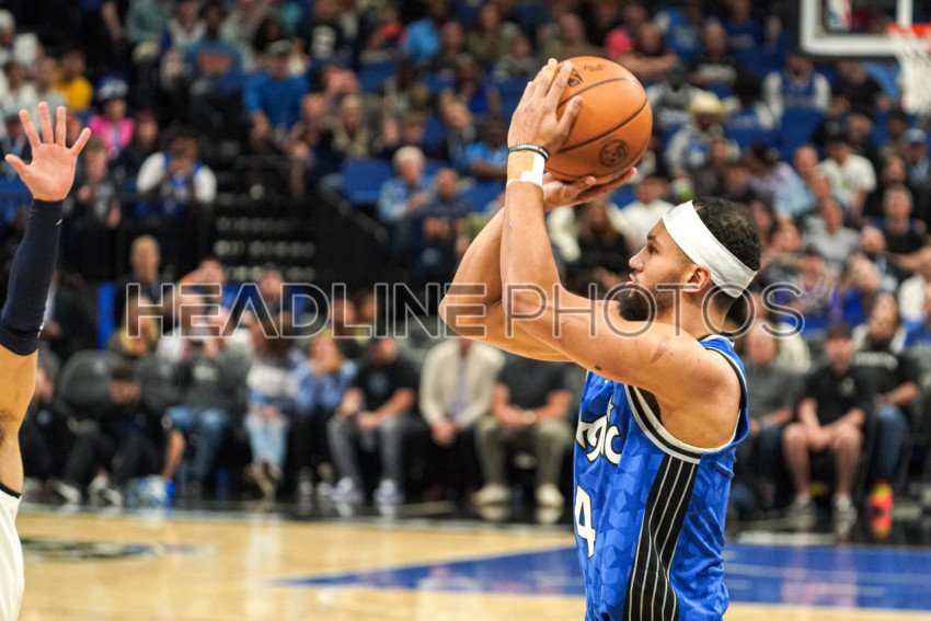 Orlando, Florida, USA, March 30, 2024, Orlando Magic guard jalen Suggs #4 shoots a three at the Kia Center. (Photo Credit: Marty Jean-Louis)