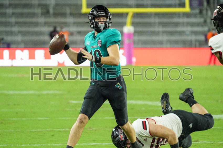 Orlando, Florida, USA, December 15, 2021, Coastal Carolina Chanticleers Quarterback Grayson McCall #10 during the 7th Annual Tailgreeter Cure Bowl at Exploria Stadium (Photo Credit: Marty Jean-Louis)