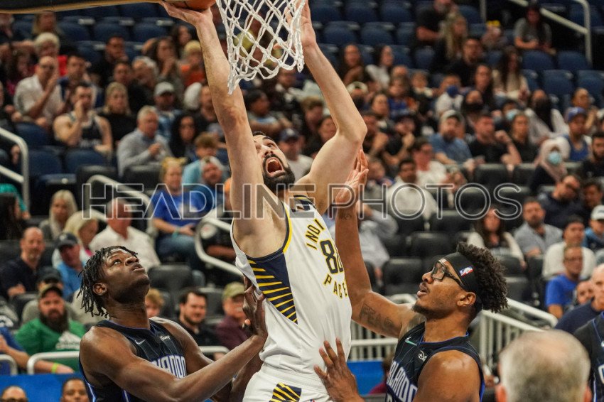 Orlando, Florida, USA, February 28, 2022, Indiana Pacers center Goga Bitadze #88 scores against the Orlando Magic at the Amway Center. (Photo Credit: Marty Jean-Louis)
