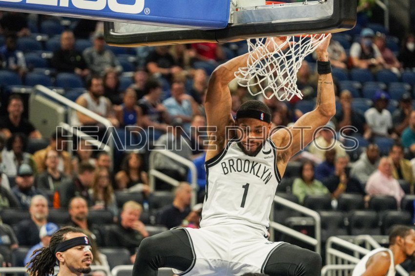 Orlando, Florida, USA, March 15, 2022, Brooklyn Nets Small Forward Bruce Brown #1 makes a dunk against the Orlando Magic at the Amway Center. (Photo Credit: Marty Jean-Louis)