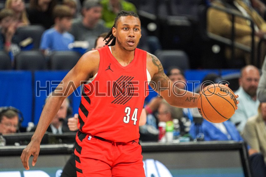 Orlando, Florida, USA, April 1, 2024, Portland Trail Blazers forward Jabari Walker #34 rushes forward at the Kia Center. (Photo Credit: Marty Jean-Louis)