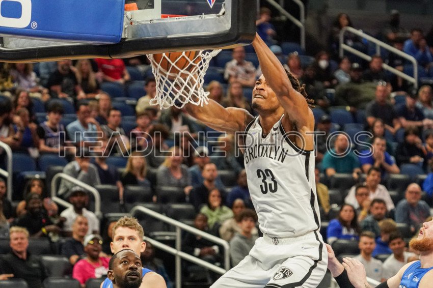 Orlando, Florida, USA, March 15, 2022, Brooklyn Nets Power Forward Nic Claxton #33 makes a dunk against the Orlando Magic at the Amway Center. (Photo Credit: Marty Jean-Louis)