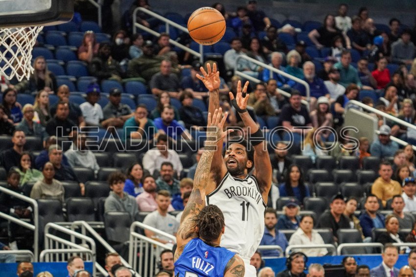 Orlando, Florida, USA, March 15, 2022, Brooklyn Nets Point Guard Kyrie Irving #11 attempt to make a three point shot during the first half at the Amway Center. (Photo Credit: Marty Jean-Louis)