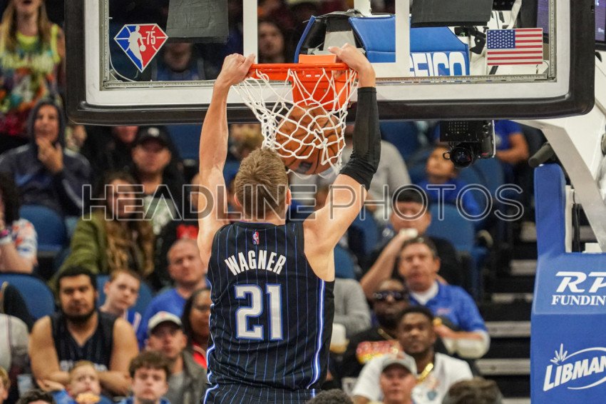 Orlando, Florida, USA, March 13, 2022, Orlando Magic Center Moritz Wagner #21 makes a dunk against the Philadelphia 76ers during the first half at the Amway Center. (Photo Credit: Marty Jean-Louis)