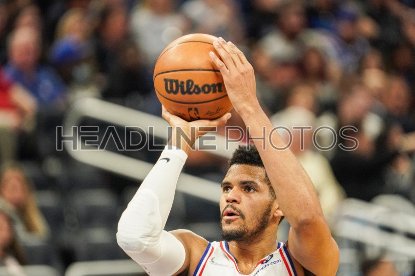 Orlando, Florida, USA, March 13, 2022, Philadelphia 76ers Power Forward Tobias Harris #12 takes a shot during the first half at the Amway Center. (Photo Credit: Marty Jean-Louis)
