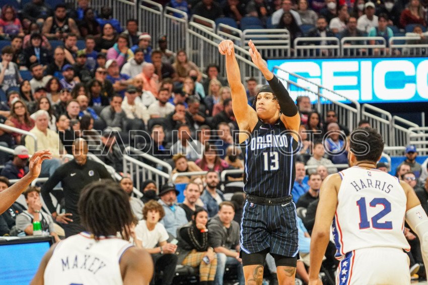 Orlando, Florida, USA, March 13, 2022, Orlando Magic's RJ Hampton #13 shoots a three point during the second half at the Amway Center. (Photo Credit: Marty Jean-Louis)
