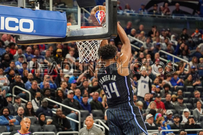 Orlando, Florida, USA, March 13, 2022, Orlando Magic Center Wendell Carter Jr #34 makes a dunk against the Philadelphia 76ers during the second half at the Amway Center. (Photo Credit: Marty Jean-Louis)