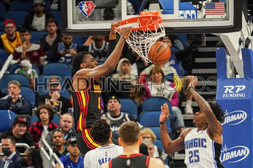 Orlando, Florida, USA, February 16, 2022, Atlanta Hawks Power Forward Onyeka Okongwu #17 makes a dunk against the Orlando Magic at the Amway Center. (Photo Credit: Marty Jean-Louis)