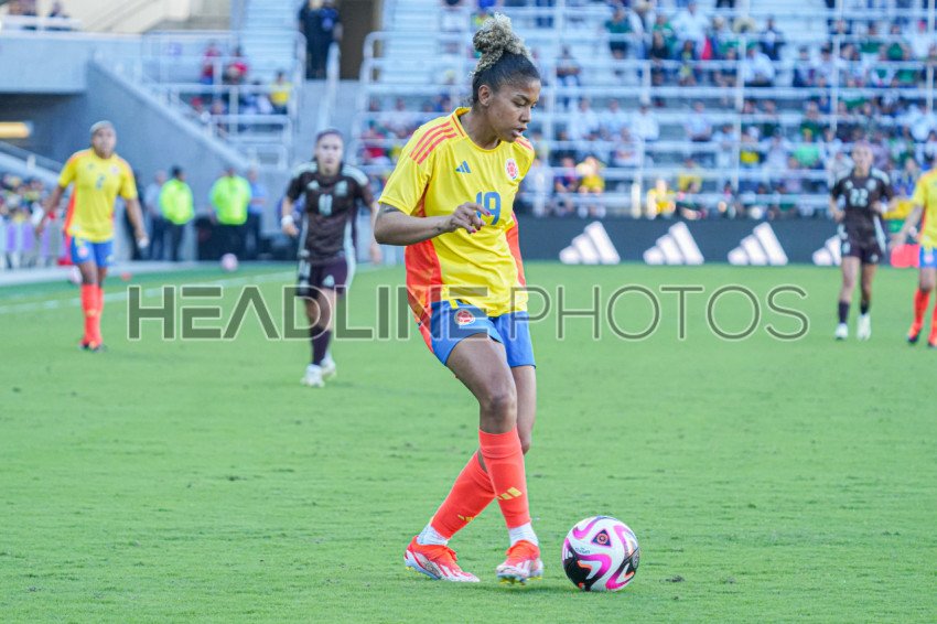 Orlando, Florida, April 6, 2024, Colombia defender Jorelyn Carabali #19 makes a pass in a Friendly Match at Inter&Co Stadium. (Photo Credit: Marty Jean-Louis)