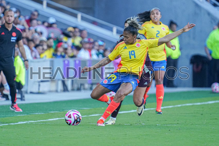 Orlando, Florida, April 6, 2024, Colombia defender Jorelyn Carabali #19 makes a pass in a Friendly Match at Inter&Co Stadium. (Photo Credit: Marty Jean-Louis)