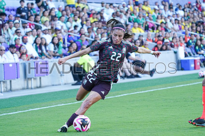 Orlando, Florida, April 6, 2024, Mexico defender Karen Luna #22 makes a pass during the game in a Friendly Match at Inter&Co Stadium. (Photo Credit: Marty Jean-Louis)