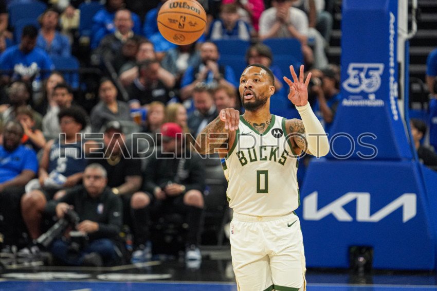 Orlando, Florida, USA, April 14, 2024, Milwaukee Bucks guard Damian Lilard #0 makes a pass in the first half at the Kia Center. (Photo Credit: Marty Jean-Louis)