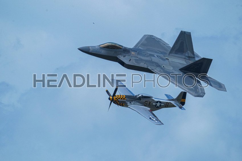 Sanford, Florida, USA, April 21, 2024, F22 Raptor & Quick Silver P-51D Mustang During the 2024 Orlando Air Show at the Orlando, Sanford International Airport. (Photo Credit: Marty Jean-Louis)