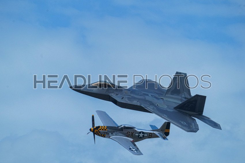 Sanford, Florida, USA, April 21, 2024, F22 Raptor & Quick Silver P-51D Mustang During the 2024 Orlando Air Show at the Orlando, Sanford International Airport. (Photo Credit: Marty Jean-Louis)