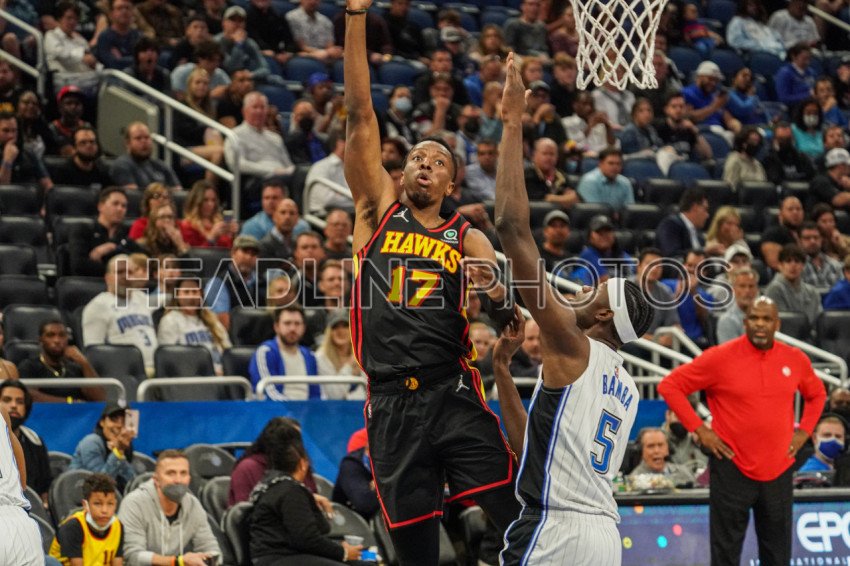 Orlando, Florida, USA, February 16, 2022, Atlanta Hawks Power Forward Onyeka Okongwu #17 attempt to make a basket during the second half at the Amway Center. (Photo Credit: Marty Jean-Louis)