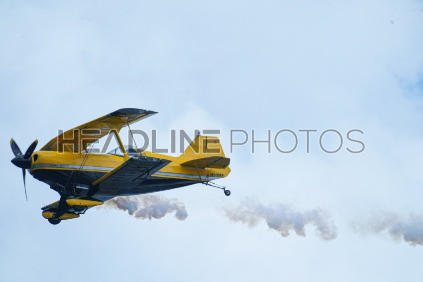 Sanford, Florida, USA, April 21, 2024, Pilot Michael Goulian flies his Cirrus SR22 plane During the 2024 Orlando Air Show at the Orlando, Sanford International Airport. (Photo Credit: Marty Jean-Louis)