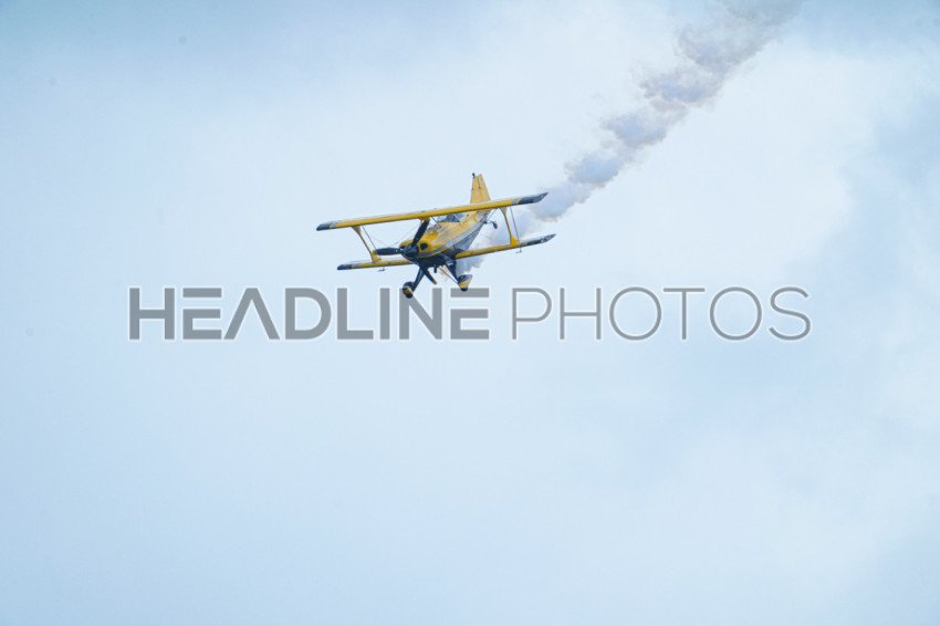 Sanford, Florida, USA, April 21, 2024, Pilot Michael Goulian flies his Cirrus SR22 plane During the 2024 Orlando Air Show at the Orlando, Sanford International Airport. (Photo Credit: Marty Jean-Louis)
