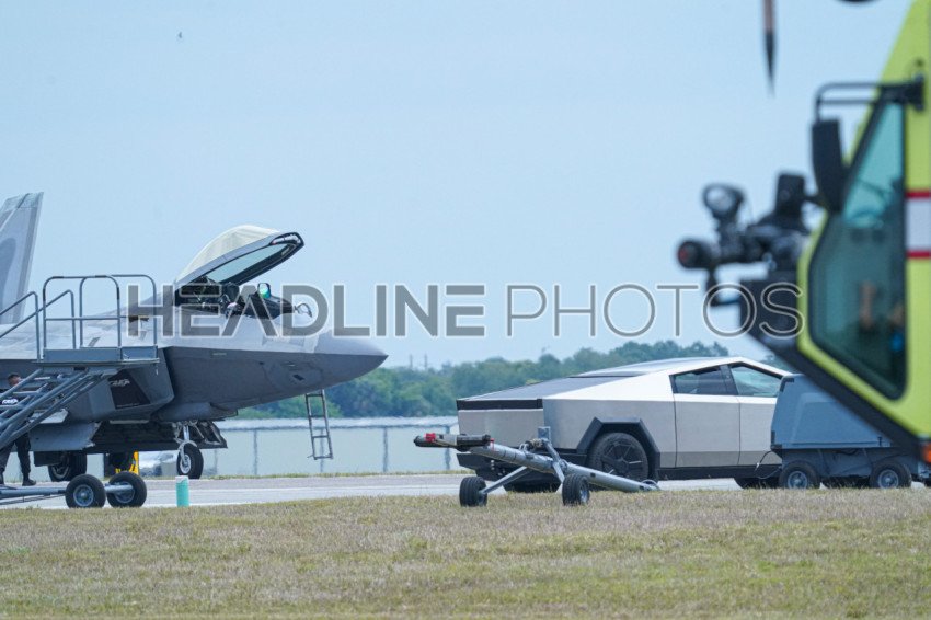 Sanford, Florida, USA, April 21, 2024, F22 Raptor & Cyber Truck During the 2024 Orlando Air Show at the Orlando, Sanford International Airport. (Photo Credit: Marty Jean-Louis)