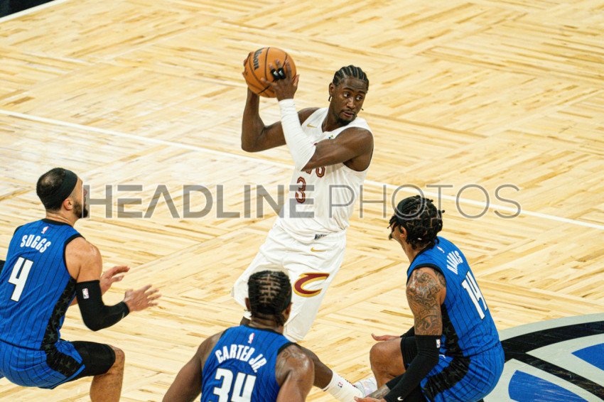 Orlando, Florida, USA, April 22, 2024, Cleveland Cavaliers guard Carris LeVert #3 look to make a pass during the NBA Playoff at the Kia Center. (Photo Credit: Marty Jean-Louis)