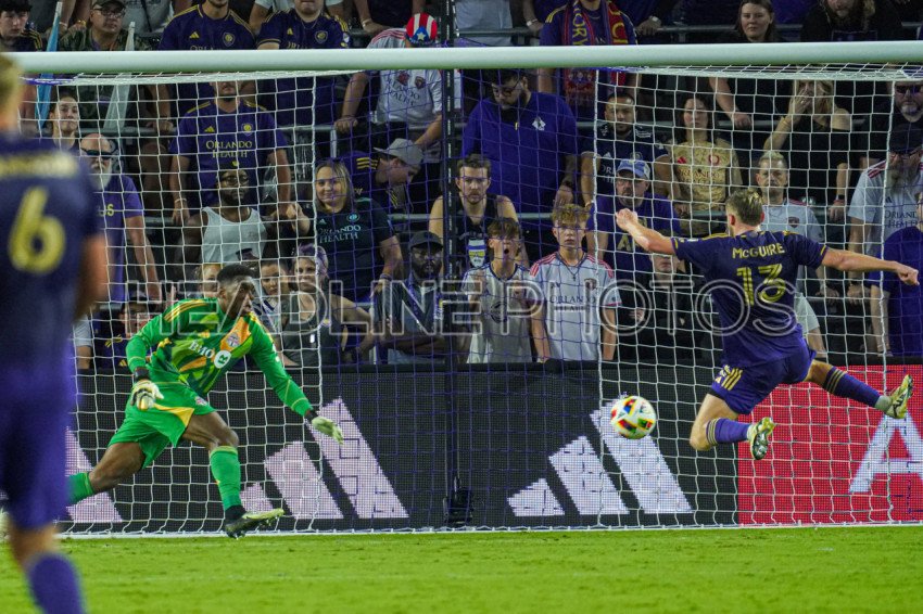 Orlando, Florida, USA, April 27, 2024, Orlando City SC player Duncan McGuire #13 scores at Inter&Co Stadium. (Photo Credit: Marty Jean-Louis)