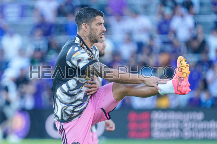 Orlando, Florida, USA, May 15, 2024, Inter Miami foward Luis Suarez #9 warms up at Inter&Co Stadium. (Photo Credit: Marty Jean-Louis)