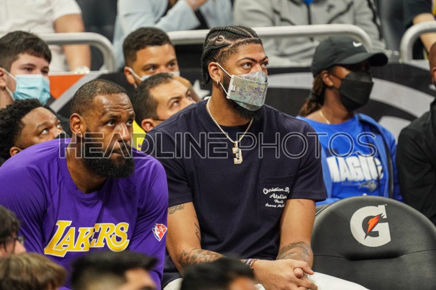 Orlando, Florida, USA, January 21, 2022, Los Angeles Lakers players Lebron James and Anthony Davis at the Amway Center. (Photo Credit: Marty Jean-Louis)