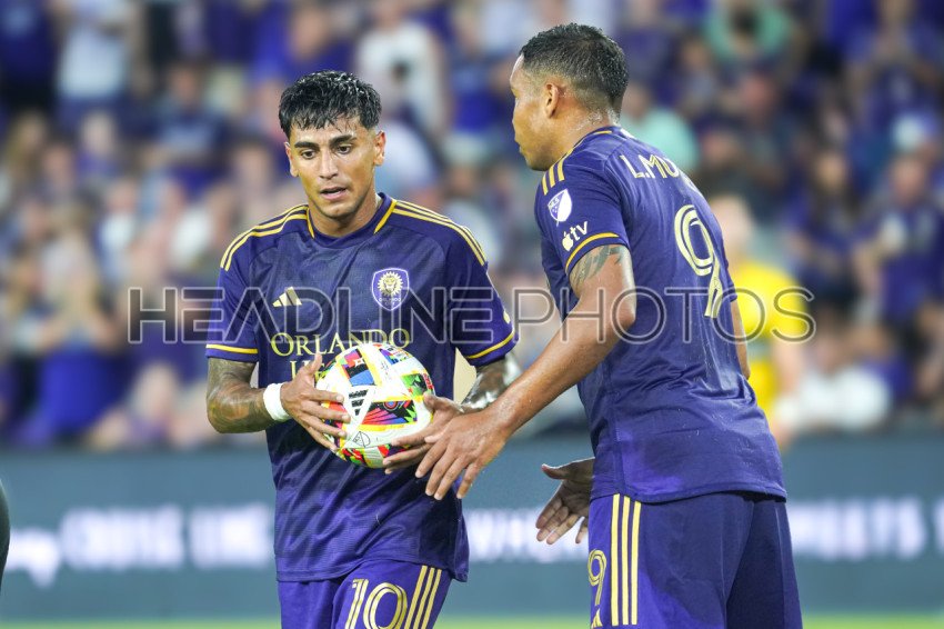 Orlando, Florida, USA, May 25, 2024, Orlando City SC players Facundo Torres #10 and Luis Muriel #9 at Inter&Co Stadium. (Photo Credit: Marty Jean-Louis)