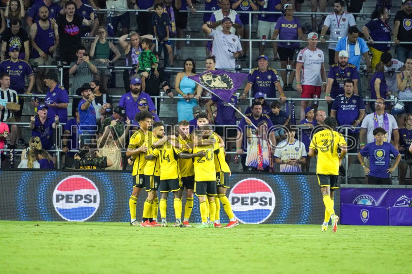Orlando, Florida, USA, May 25, 2024, Columbus Crew players celebrate first goal of the match at Inter&Co Stadium. (Photo Credit: Marty Jean-Louis)