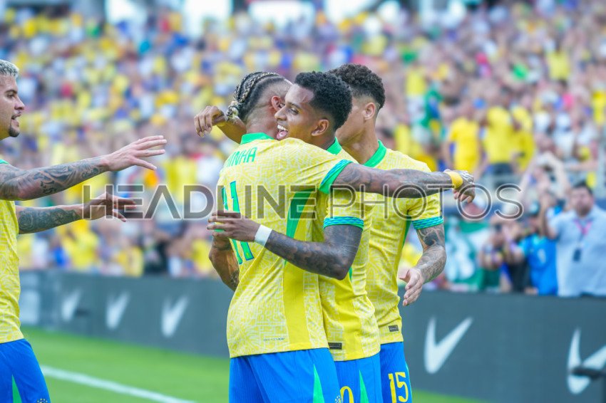 Orlando, Florida, June 12, 2024, Brazil players celebrate after a goal at Camping World Stadium. (Photo Credit: Marty Jean-Louis)