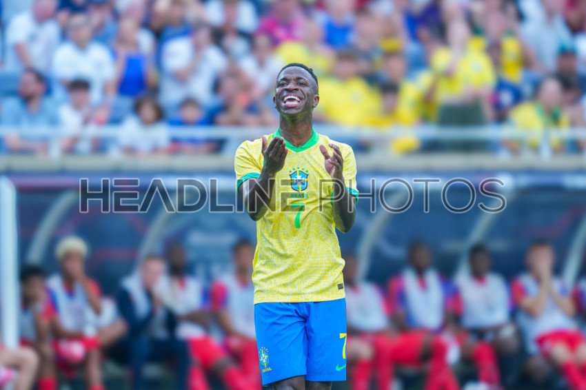 Orlando, Florida, June 12, 2024, Brazil forward Junior Vinicius #7 reacts after a play at Camping World Stadium. (Photo Credit: Marty Jean-Louis)