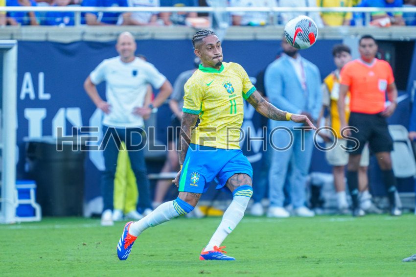 Orlando, Florida, June 12, 2024, Brazil forward Raphinha #11 receives a pass at Camping World Stadium. (Photo Credit: Marty Jean-Louis)