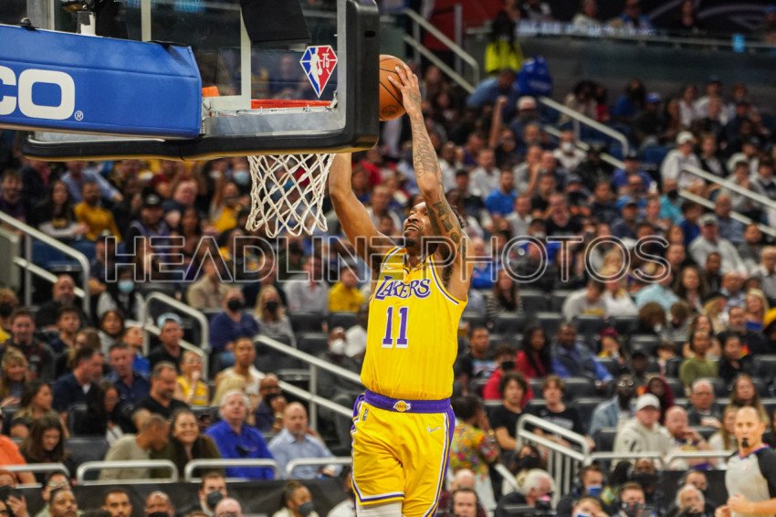 Orlando, Florida, USA, January 21, 2022, Los Angeles Lakers Shooting Guard Malik Monk\n makes a dunk against the Orlando Magic at the Amway Center. (Photo Credit: Marty Jean-Louis)