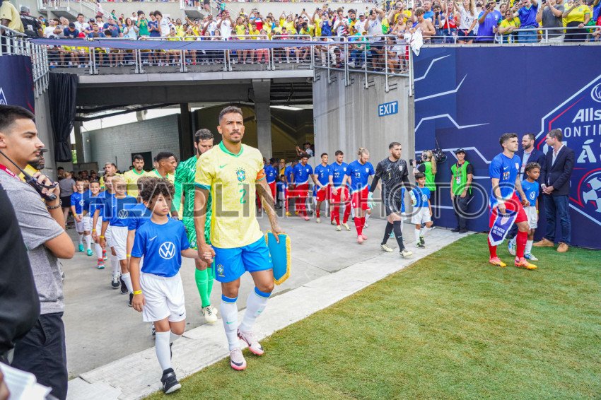 Orlando, Florida, June 12, 2024, Brazil and USA players entering the pitch for the opening ceremony at Camping World Stadium. (Photo Credit: Marty Jean-Louis)