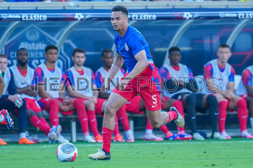 Orlando, Florida, June 12, 2024, USA defender Antonee Robinson #5 runs after the ball at Camping World Stadium. (Photo Credit: Marty Jean-Louis)