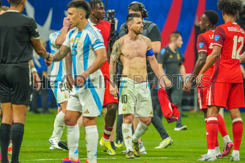 Atlanta, Georgia, USA, June 20, 2024, Argentina forward Lionel Messi #10 shirtless during the 2024 Copa America at Mercedes-Benz Stadium. (Photo Credit: Marty Jean-Louis)