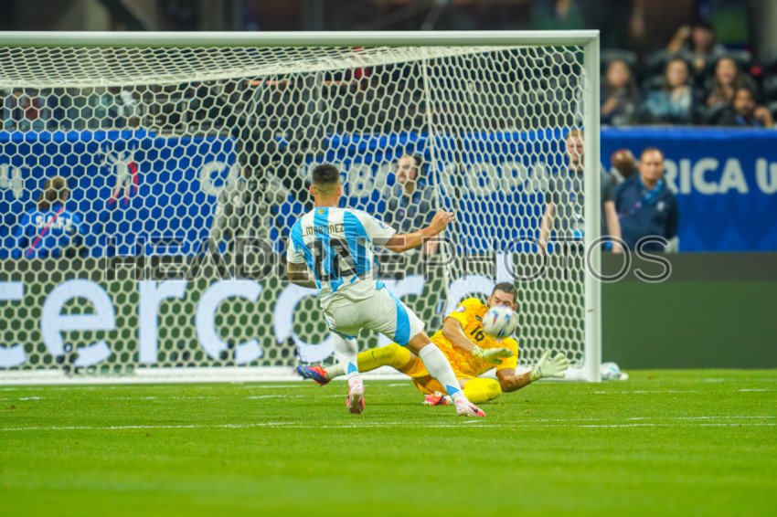Atlanta, Georgia, USA, June 20, 2024, Argentina's Lautaro Martínez #22 attempt to score during the 2024 Copa America at Mercedes-Benz Stadium. (Photo Credit: Marty Jean-Louis)