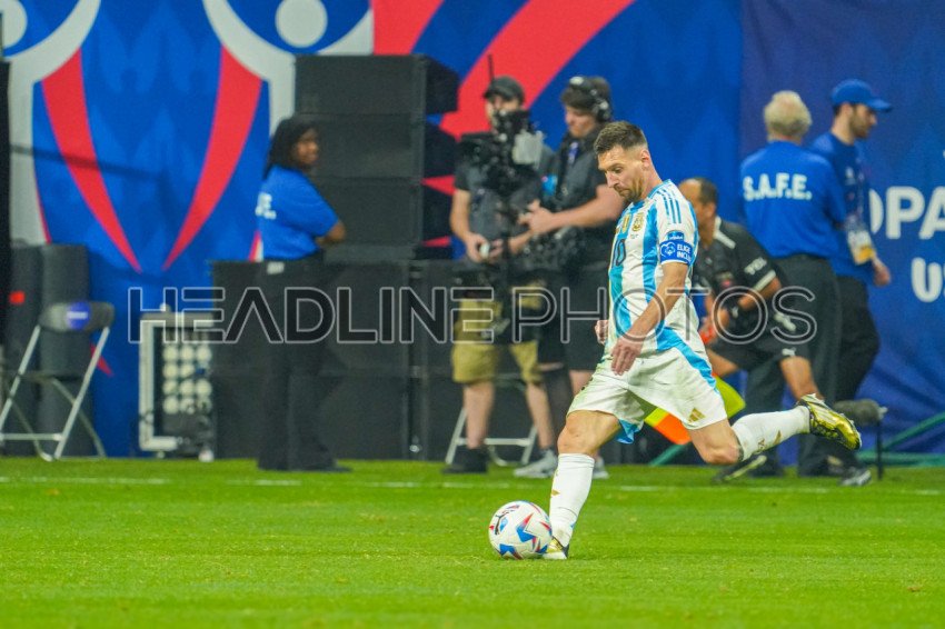 Atlanta, Georgia, USA, June 20, 2024, Argentina forward Lionel Messi #10 attempt to score during the 2024 Copa America at Mercedes-Benz Stadium. (Photo Credit: Marty Jean-Louis)