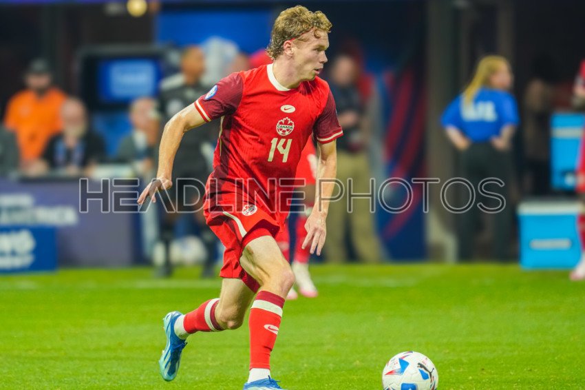 Atlanta, Georgia, USA, June 20, 2024, Canada player Jacob Shaffelburg #14 runs up field during the 2024 Copa America at Mercedes-Benz Stadium. (Photo Credit: Marty Jean-Louis)