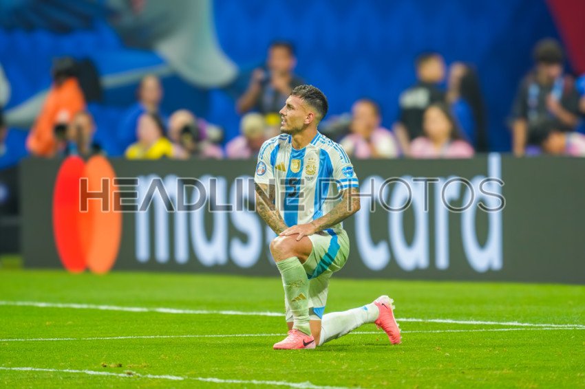 Atlanta, Georgia, USA, June 20, 2024, Argentina's Leandro Paredes #5 takes a knee during the 2024 Copa America at Mercedes-Benz Stadium. (Photo Credit: Marty Jean-Louis)