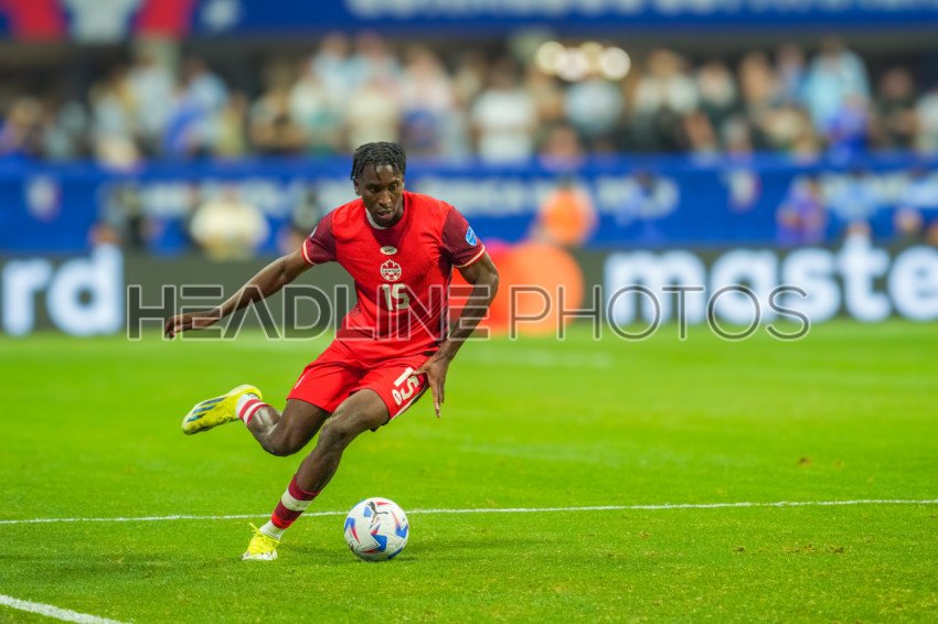 Atlanta, Georgia, USA, June 20, 2024, Canada defender Moïse Bombito #15 controls the ball during the 2024 Copa America at Mercedes-Benz Stadium. (Photo Credit: Marty Jean-Louis)